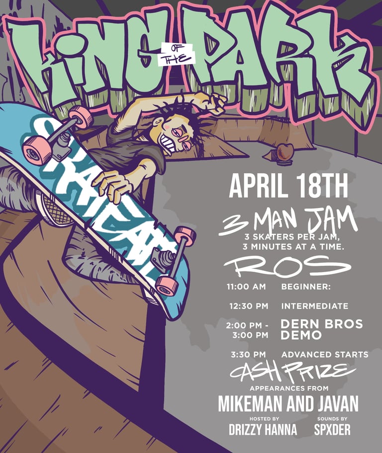 Get ready—King of the Park is back! Hosted by Drizzy, this skateboarding event invites all skill levels to bring their boards and showcase their moves. Don’t miss the Dern Bros demo at 2 PM, adding even more excitement to the day.